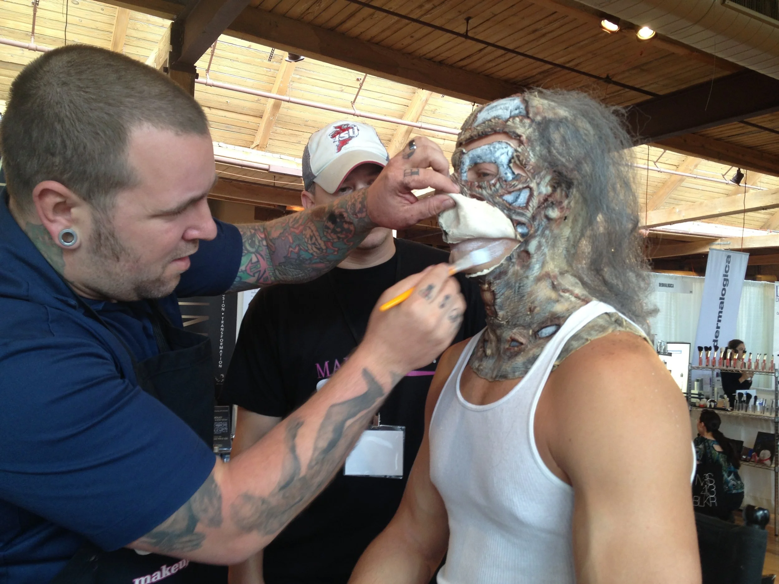 Students will learn advanced techniques in application of pre-made prosthetics, bald caps; correct technique for laying facial hair and use of spfx products will be taught. Students are asked to bring your basic makeup kit, all theatrical and spfx supplies will be provided.